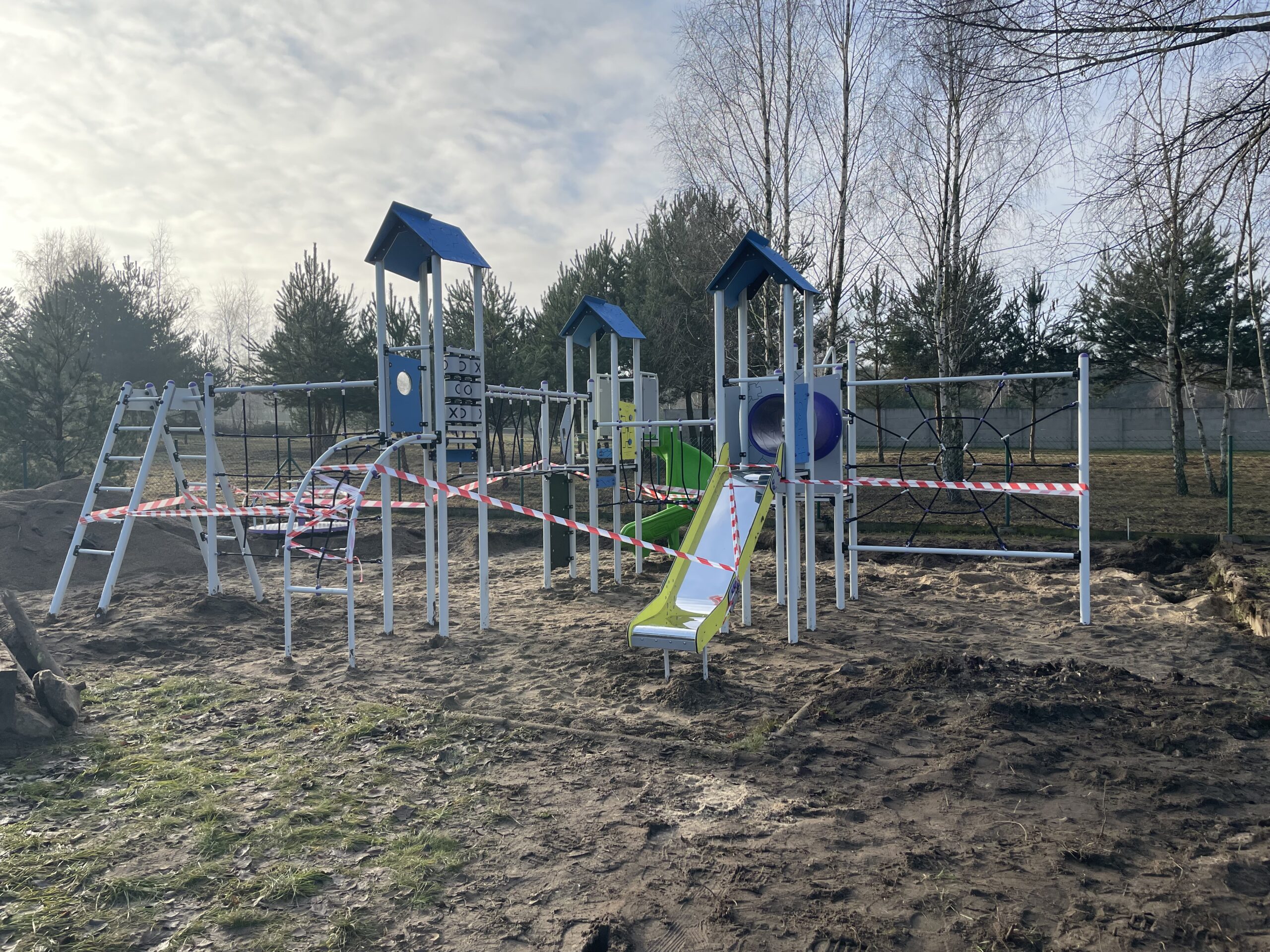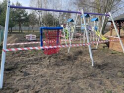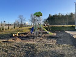 i przygotowania terenu pod nowe zestawy. Wykorytowano i wyrównano powierzchnię. Następnie wykonano strefy bezpieczne pod posadowienie nowych zabawek. Wymieniono wszystkie kosze na śmieci oraz nasadzono krzewy i rośliny ozdobne. Specjalistyczna firma zajęła się montażem zabawek. I tak zostały zamontowane: huśtawka dla dzieci również dzieci z niepełnosprawnościami, karuzela tarczowa z siedziskami, 2 zestawy modułowe składające się m. in. ze zjeżdżalni o różnych wysokościach, drabinek i ścianek wspinaczkowych, tuneli prostych, obrotowych.