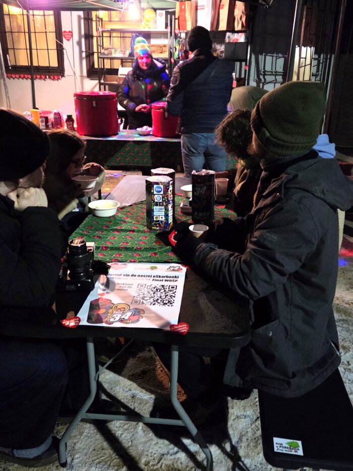 Uczestnicy finału mogli skorzystać z przygotowanych przez KGW Poręby gorących napojów, kiełbaski z ogniska, pysznej grochówki oraz domowych wypieków, co sprawiło, że wydarzenie stało się prawdziwym świętem pomagania.