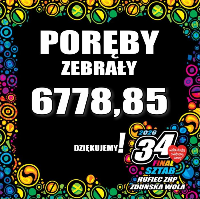 Działania WOŚP na terenie gminy zostały zorganizowane przez Koło Gospodyń Wiejskich Poręby, które z ogromnym zaangażowaniem i dbałością o każdy szczegół przygotowało całe wydarzenie. Dzięki świetnej organizacji, pozyskaniu licznych sponsorów oraz ogromnej pracy społecznej udało się zebrać imponującą kwotę 6 778,85 zł, a jednocześnie stworzyć wyjątkową, ciepłą i wspólnotową atmosferę.